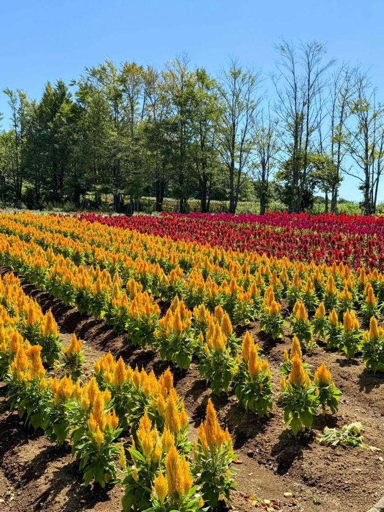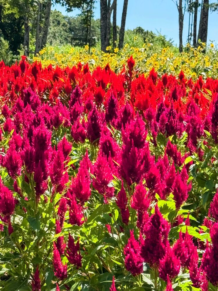 ひるがの高原牧歌の里では ケイトウも色鮮やかに咲いていました