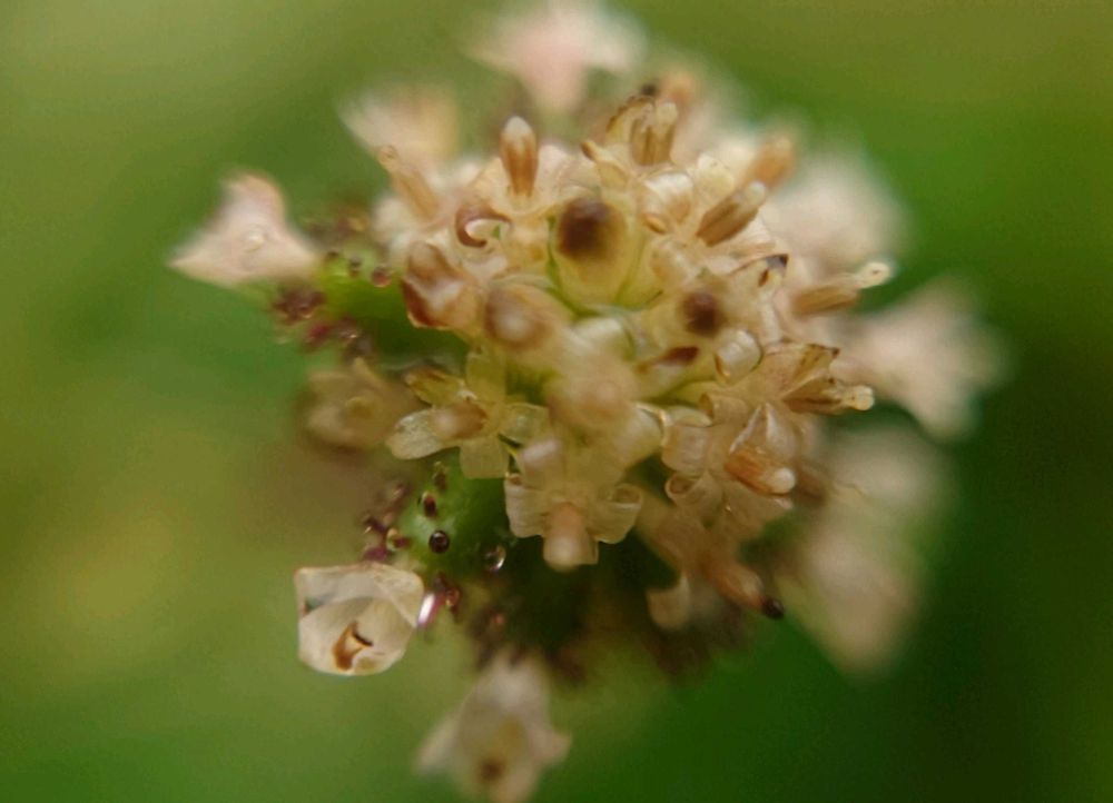花冠は長さ1.5mmの広鐘形で4~5裂し、退化した葯がある