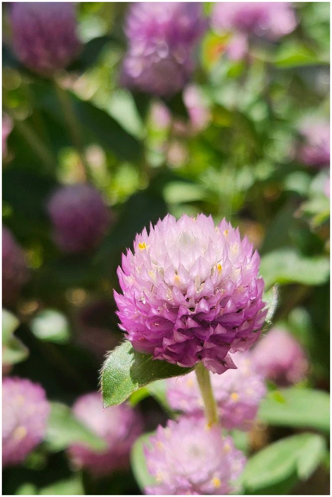 ⑤今日のお花のセンニチコウ 優しい色合いですが猛烈な日差しに負けない強さ…そのギャップに惹かれます💞