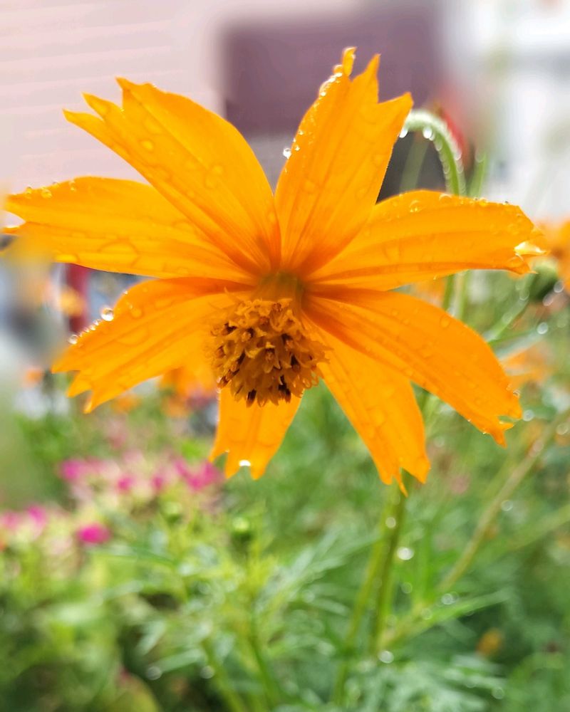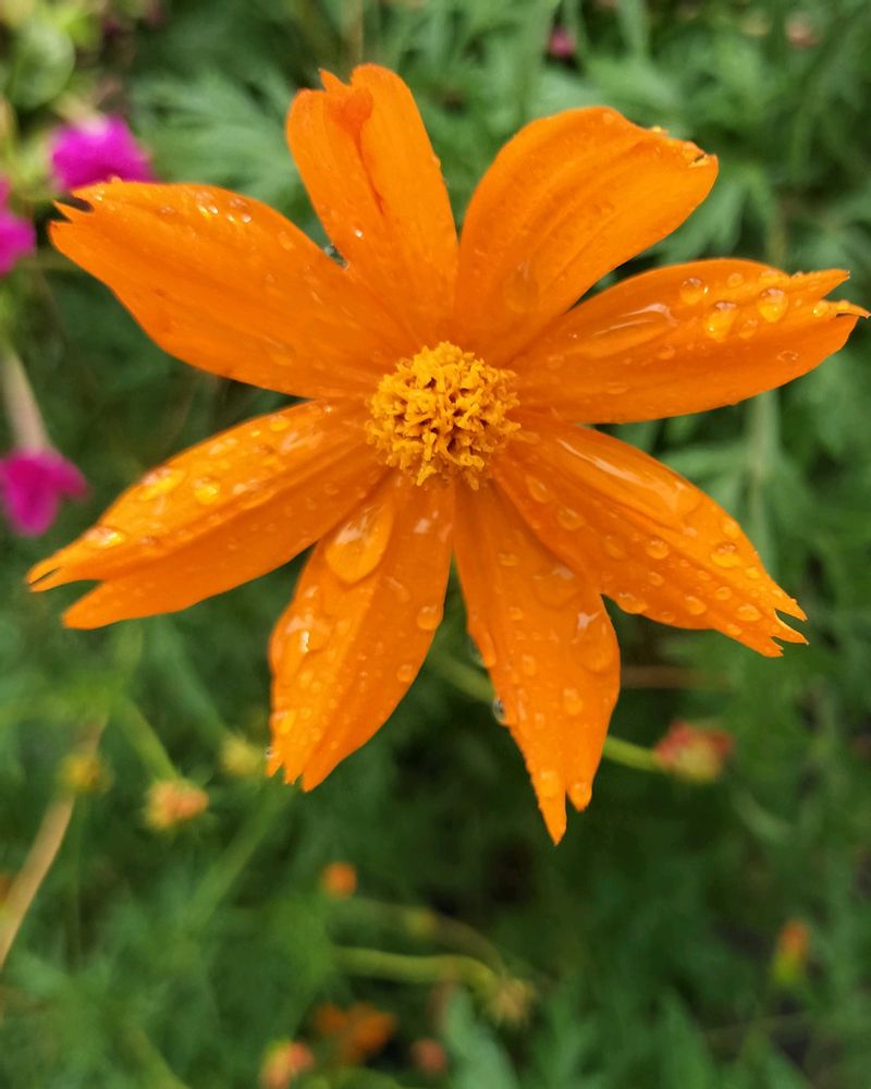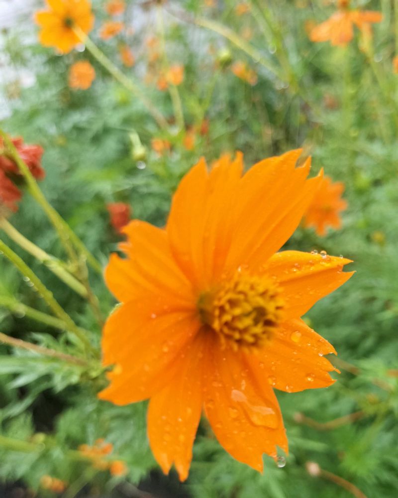 キバナコスモスが雫を受けても健気に咲いていました🧡🧡🧡