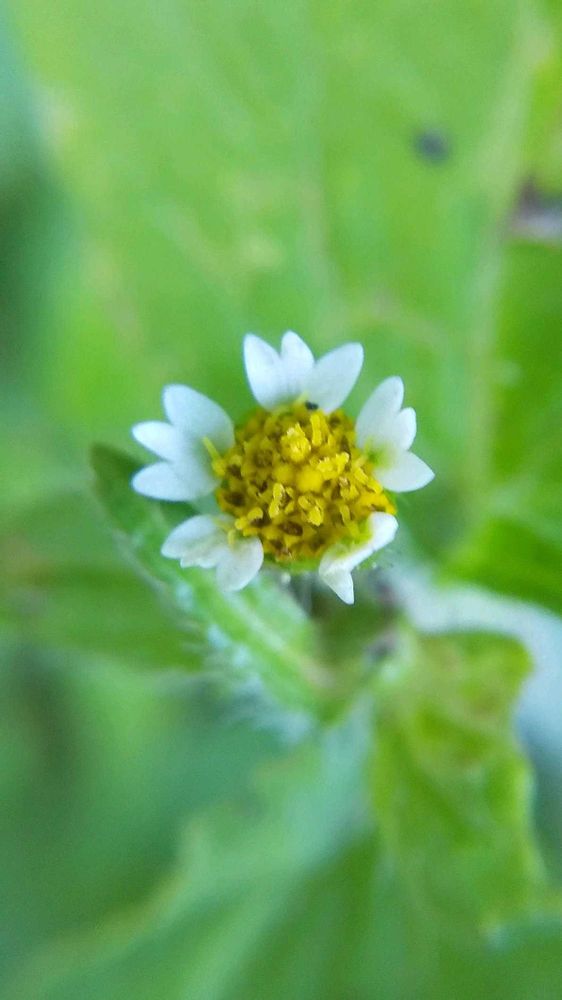 熱帯アメリカ原産の帰化植物ハキダメギクです かの牧野博士が世田谷の掃き溜めで発見したことから この名前が付けられたそうです 確かにこの花も 人に踏みつけられそうな場所で茎葉を伸ばし 5ミリ程のとても小さな花をたくましく咲かせていました 「不屈の精神」と「豊富」という花言葉が似つかわしい花です