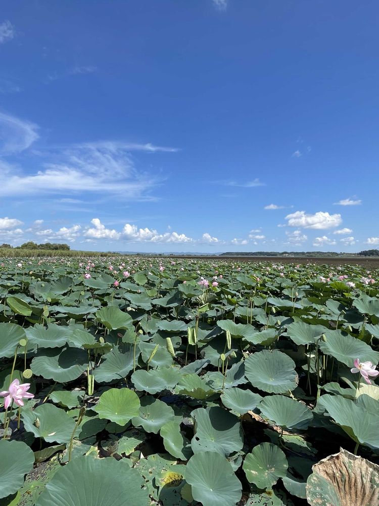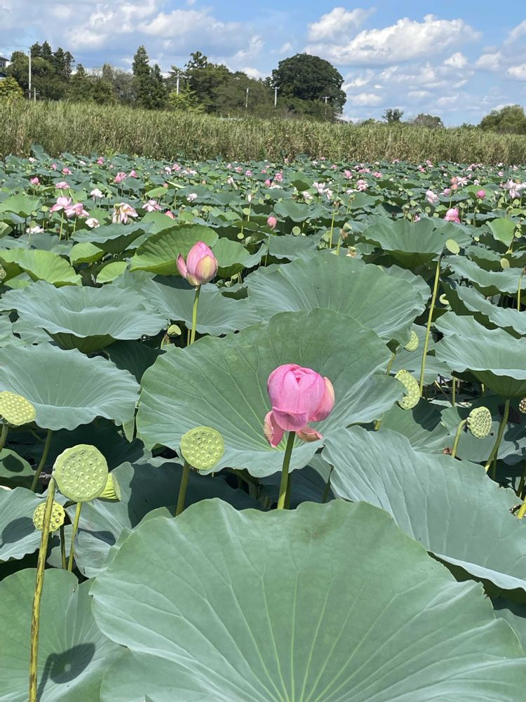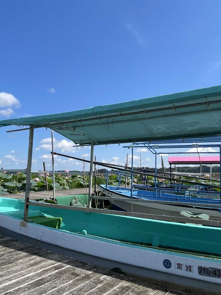 ハスの花は終わりかけていますが8月は遊覧船に乗って池を巡れます
