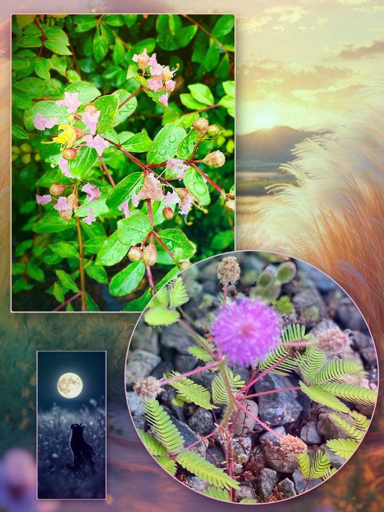みかんさんのオジギソウ,オジギソウ,百日紅(サルスベリ)の投稿画像