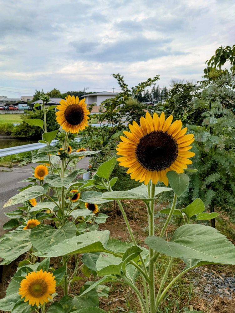 夏の終わりに咲き出したヒマワリ🌻💚の葉が可愛いいです☺️💓