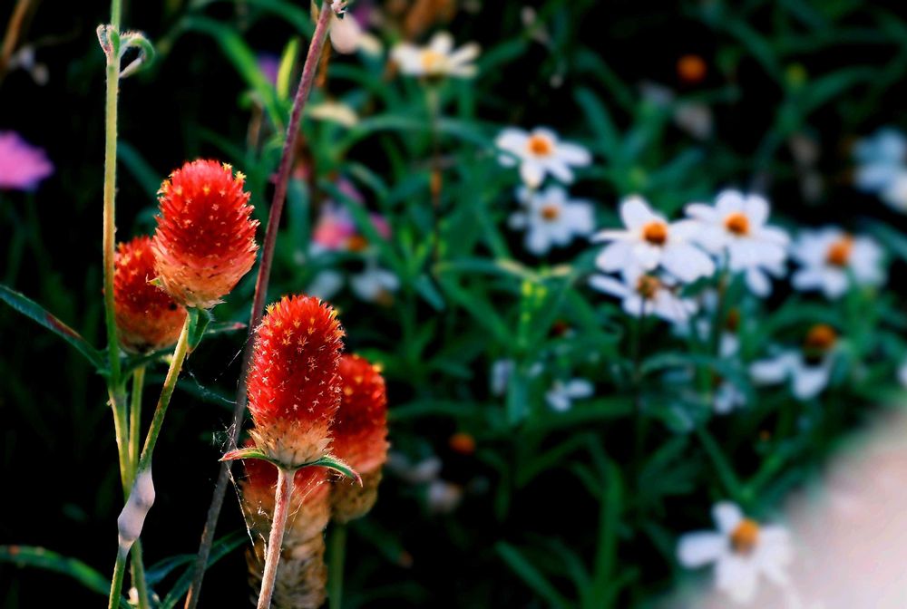 花::直径2cmほどの丸い頭花をつけ、花色はもともと黄色いものが「キバナ」の由来ですが、鮮やかな赤やオレンジ色の品種も多く出回っています。→千日紅ってピンク色のイメージでした😳