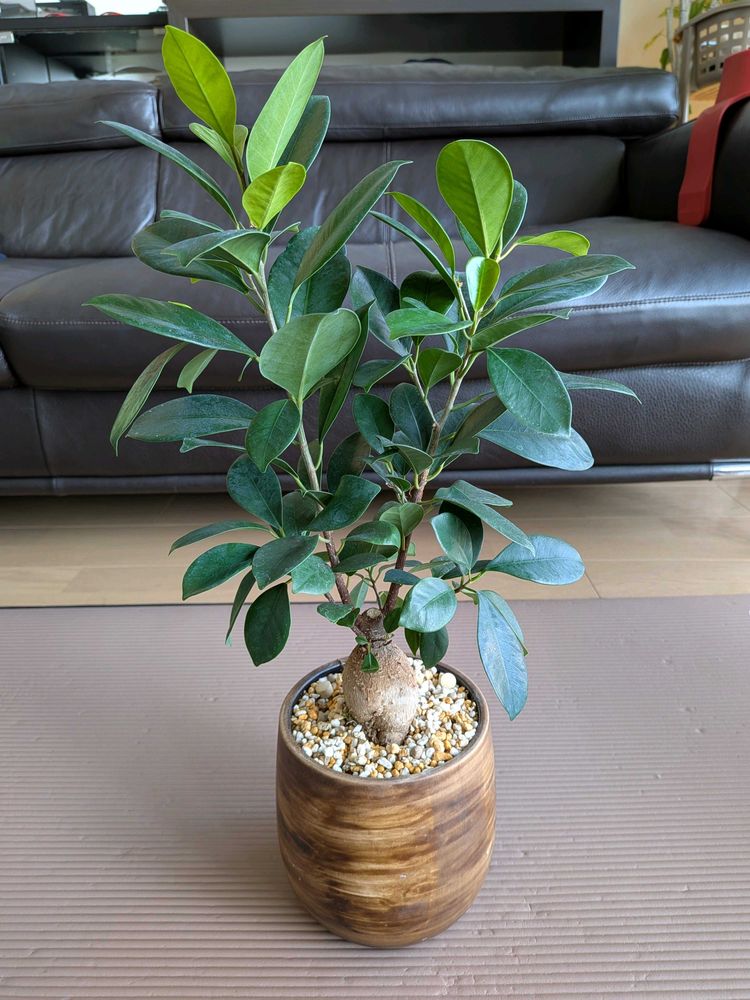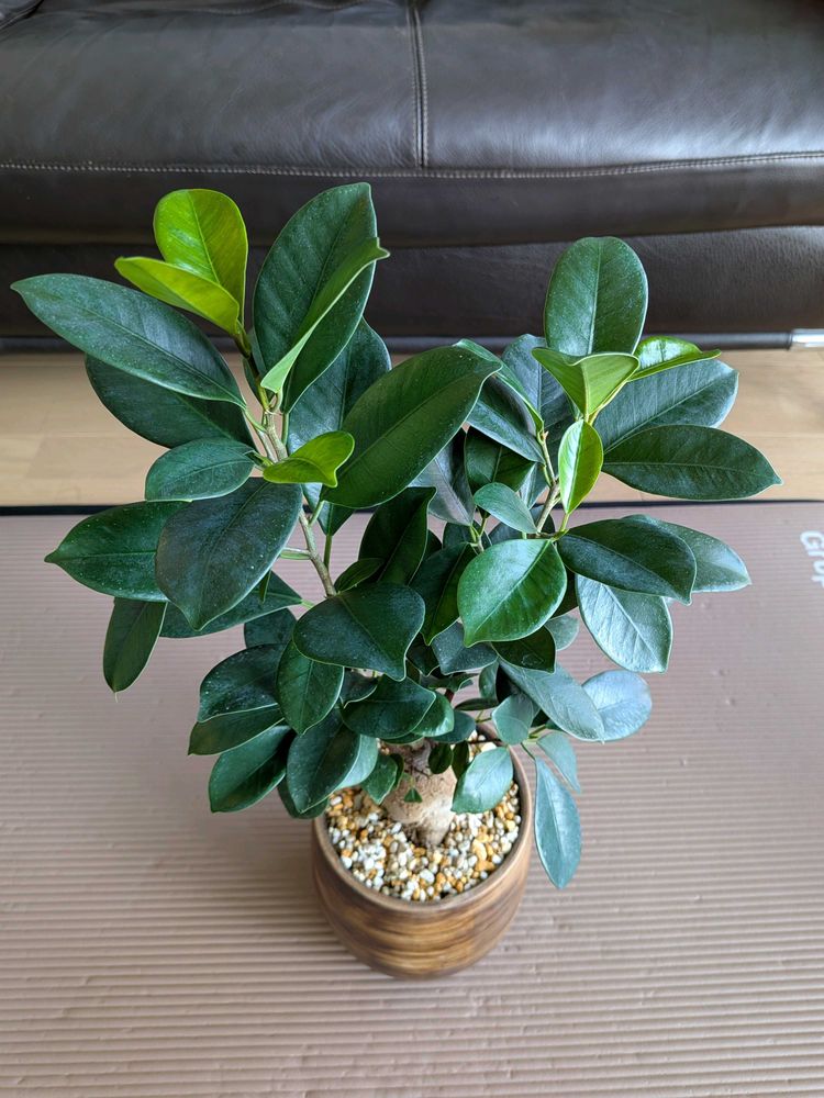 いくつかある他のニンジンガジュマルと比べて、葉が厚くて色も濃いマットグリーンの不思議な子🤔
