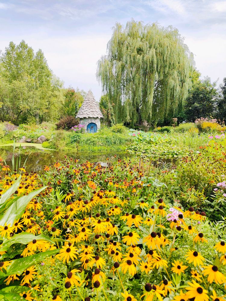 ノームの家を彩る花はルドベキアやヘレニウムが中心になっています