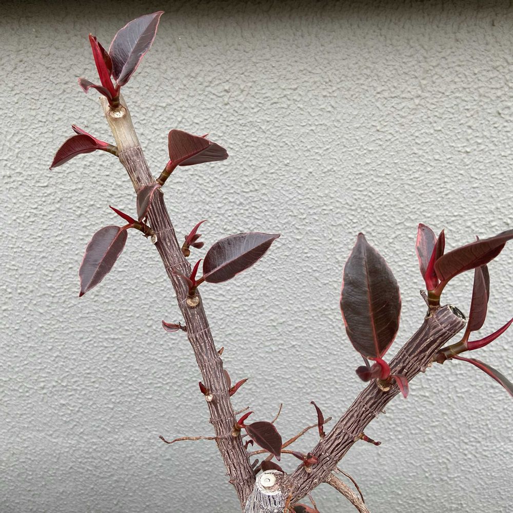 ベリーズかルビーかわからないゴムの木、外管理ですこぶる元気!