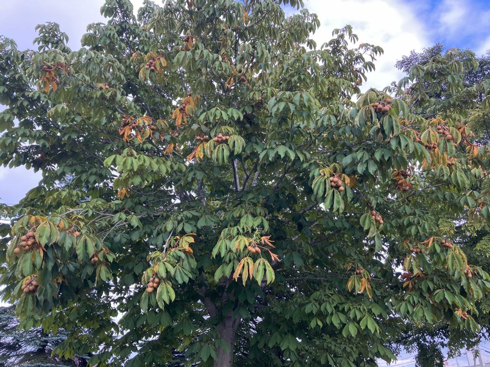 私は栃木県出身です。県庁前の道路は、栃の木が街路樹として植えて有ります。でも、実が成ると車に落ちて車が凹んで大変な事になります。その前に実を落とす作業をするのですが、県庁前の道路ですから、作業も大変なようです。栃の実は、食べても美味しくなく、食べる人はいませんが、栃の実まんじゅうというのが売られています。でも、県の木なので伐採はしないようです。大通りを挟んで、イチョウの街路樹が続きその先に宇都宮市役所が有ります。秋にはイチョウの葉も落ちますが銀杏も落ちているので、踏まないように注意が必要です。