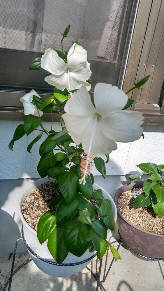 蠍雅さんのハイビスカス オレンジ・フラミンゴ,ハイビスカス ホワイトバタフライ,古株のハイビスカスの投稿画像