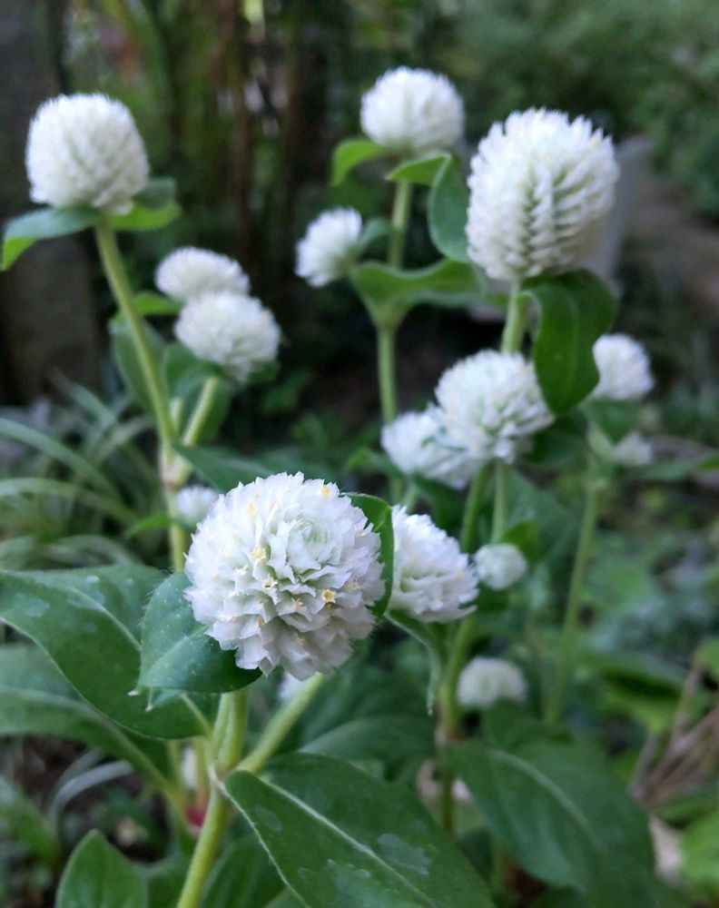 ① お花屋さんを覗くと、欲しかった白い千日紅があったので、1週間前にお迎えしたばかりです🌱