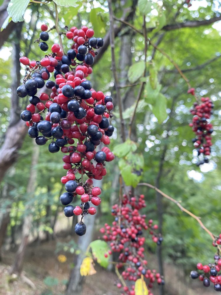 クマヤナギ、初めて見ました。見事な房でしたので、黒いのをかじってみましたら、ピリッと来ることもなく普通の味で、食べられそうでした😁ぶどう味ではなかったです