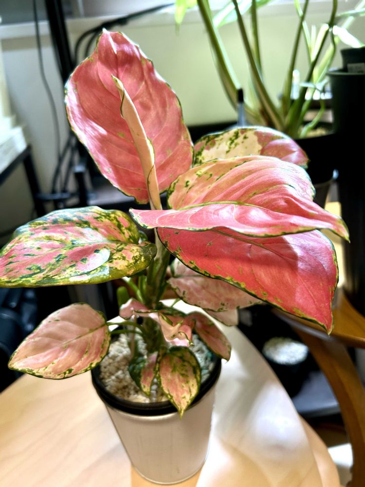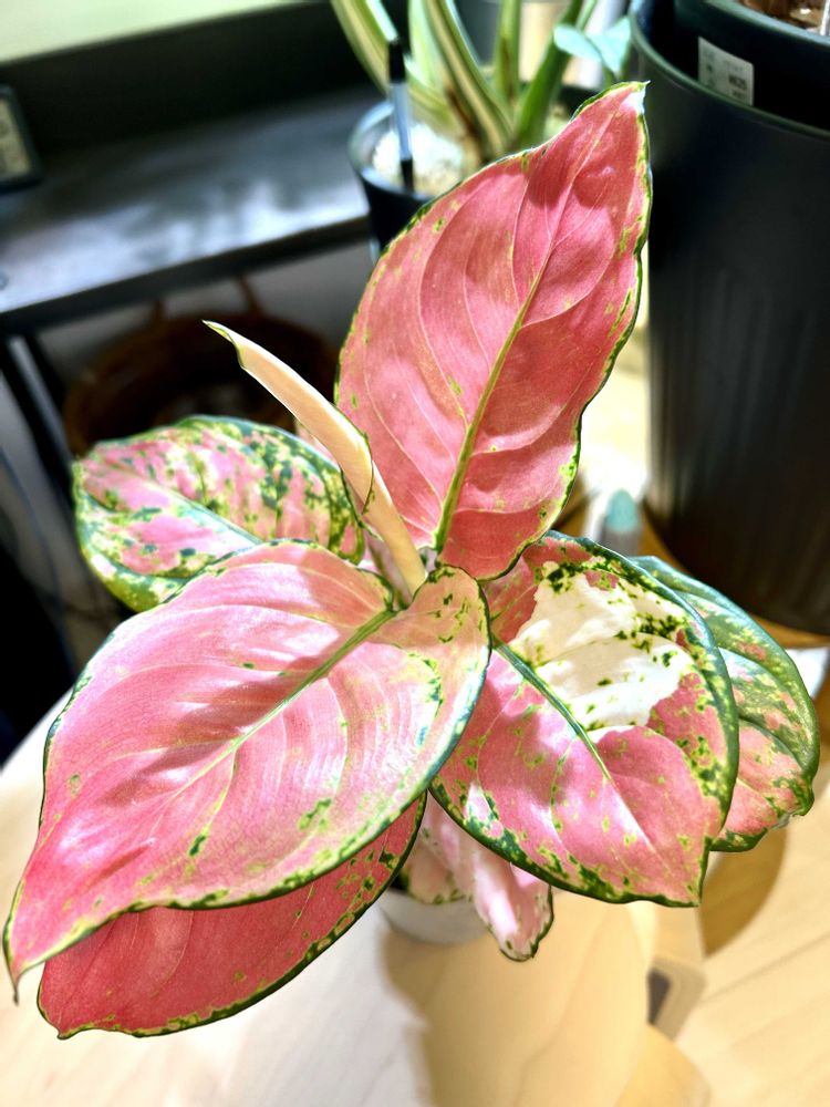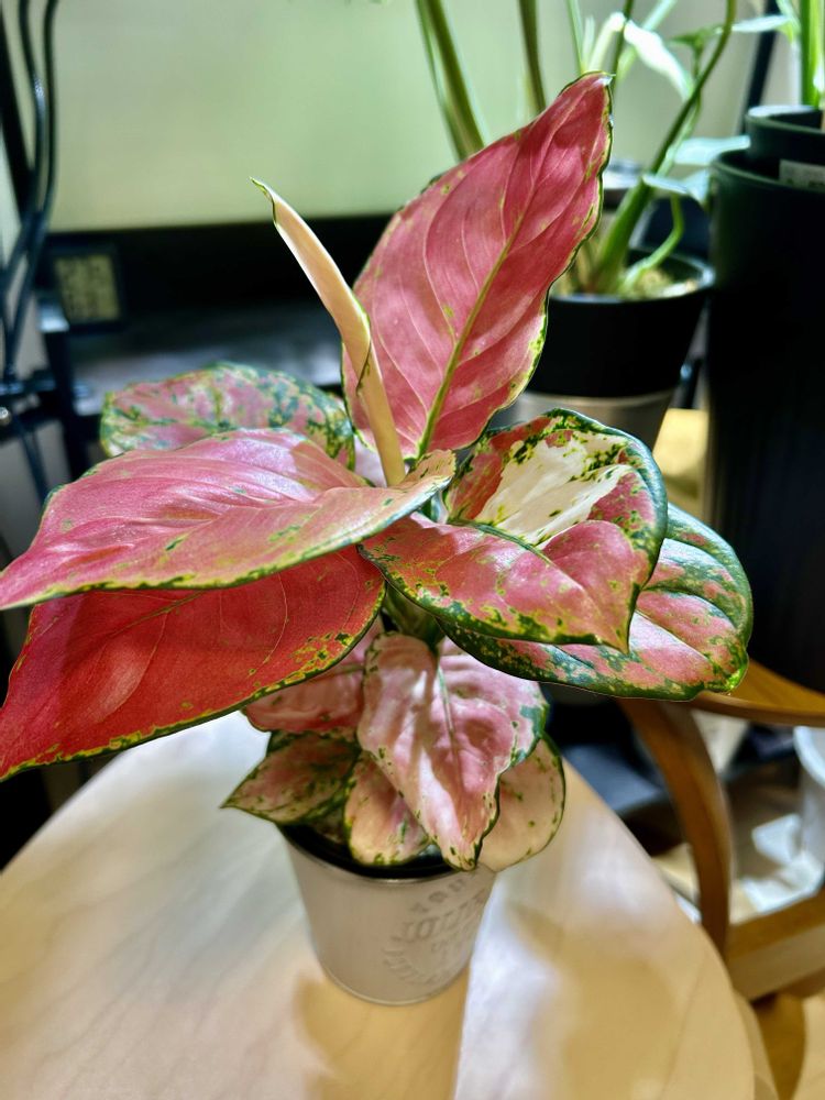 アグラオネマオースピシャスレッド😊とってもきれいな色になってきました😊葉っぱ1枚1枚の表情が違うのがとっても面白いです😊タイの宝石🇹🇭😊