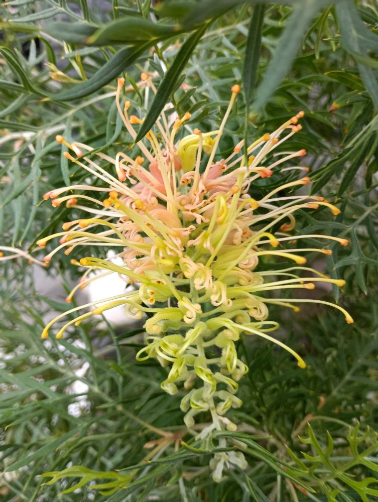 1️⃣2️⃣通勤途中で出会ったお花「グレビレアピーチズ&クリーム」🧡💚