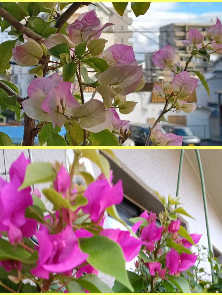 ブーゲンビリアは、こんなに色が変わるのね。下も好きだけど、買った人は、買ったときの色が好きよね🤔