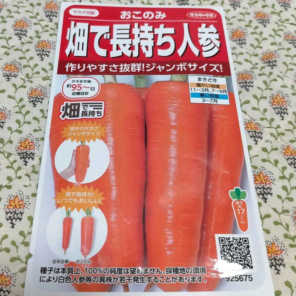【3枚目】今年はニンジンを育てたいなーと思っていたところ、作りやすいらしいと噂のこの品種が売っていたので購入。