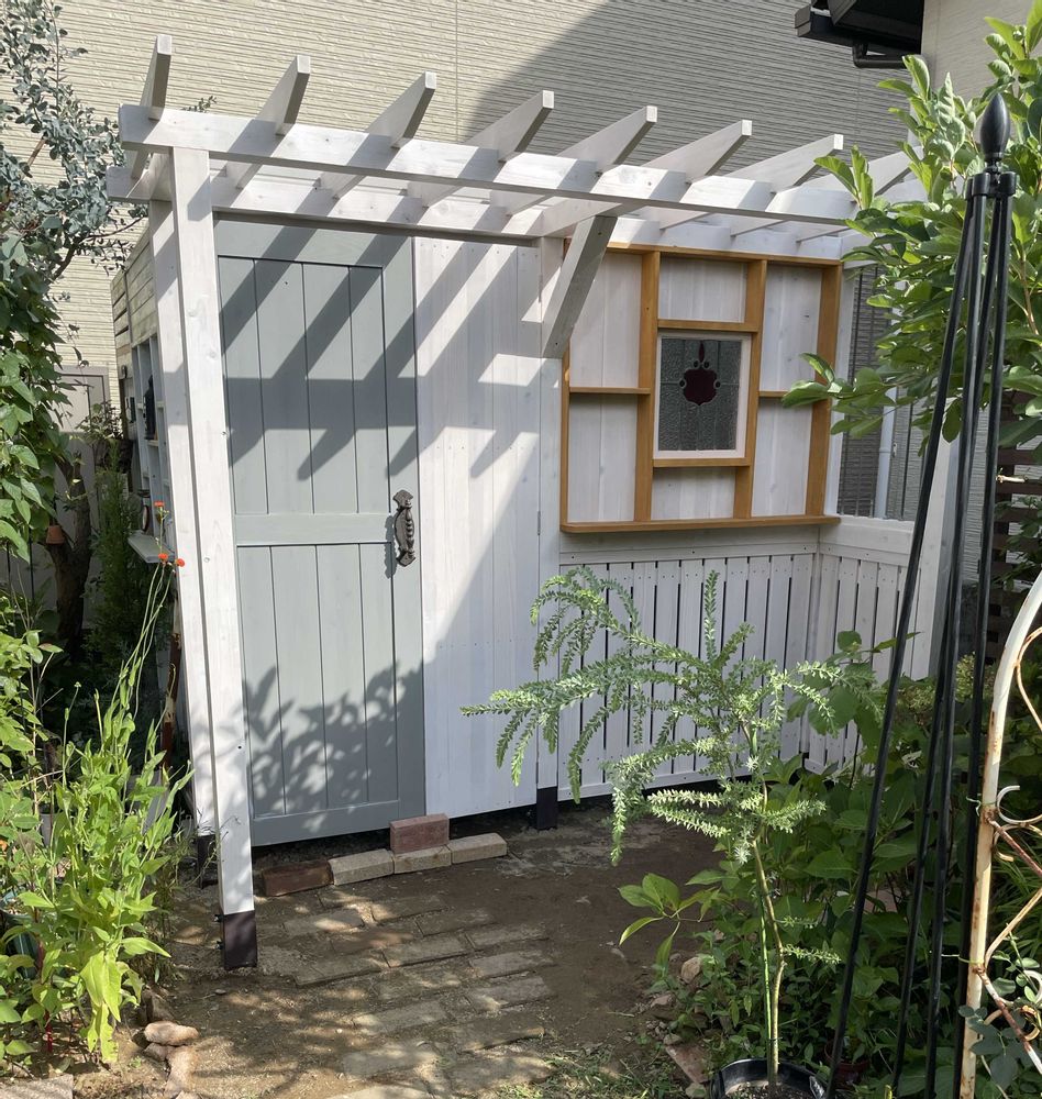 物置の前にパーゴラかしら。