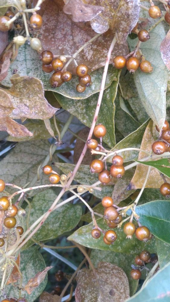 その臭いからこのような不名誉な名前を付けられたヘクソカズラですが 名前から来るイメージとは全く違って ちっちゃな花もこの艷やかな黄金色の実もとっても綺麗ですね。🤗✨