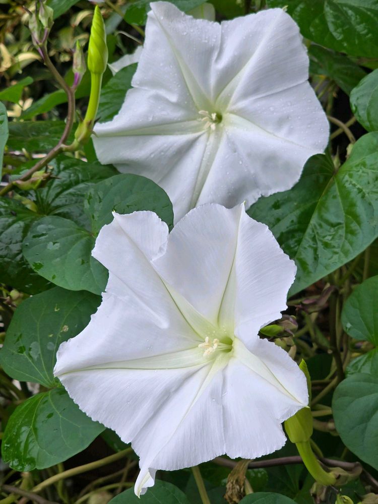八重咲き🤍朝顔可愛い咲いてくれて良かったね🥰夜顔🤍大輪なんだね😍😍💖