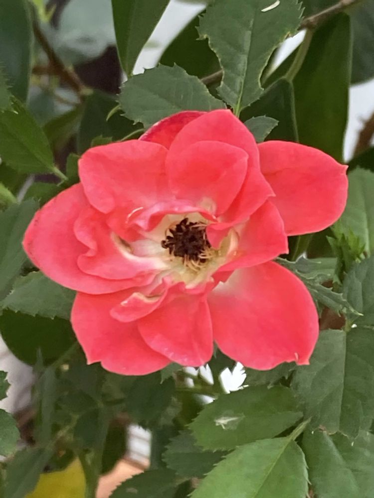 三輪のミニ薔薇を玄関先に置き