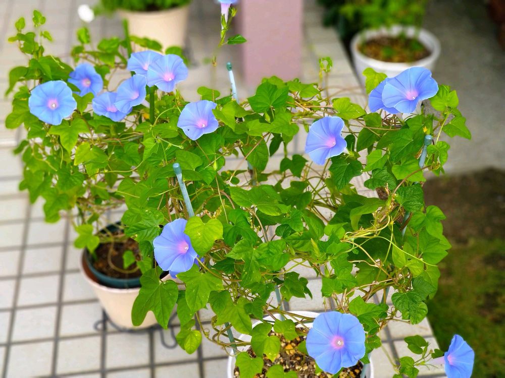朝が少し涼しくなり、朝顔ブルーも輝いてます😃