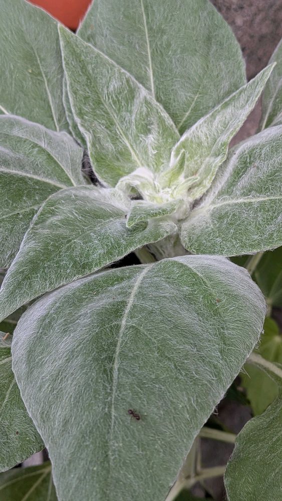 1️⃣銀葉ヒマワリの葉っぱ🌿です。ふわふわモフモフです。花の開花はいつかなぁ。