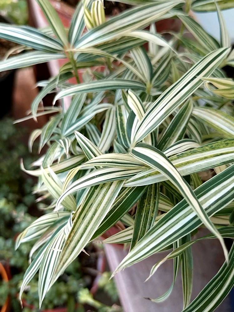 稚児笹って涼しげな葉っぱがいいですよね🌿根っこがすぐ伸びるみたいで鉢底からも出てきてます😆🌱株分けはどうしようかな🤔