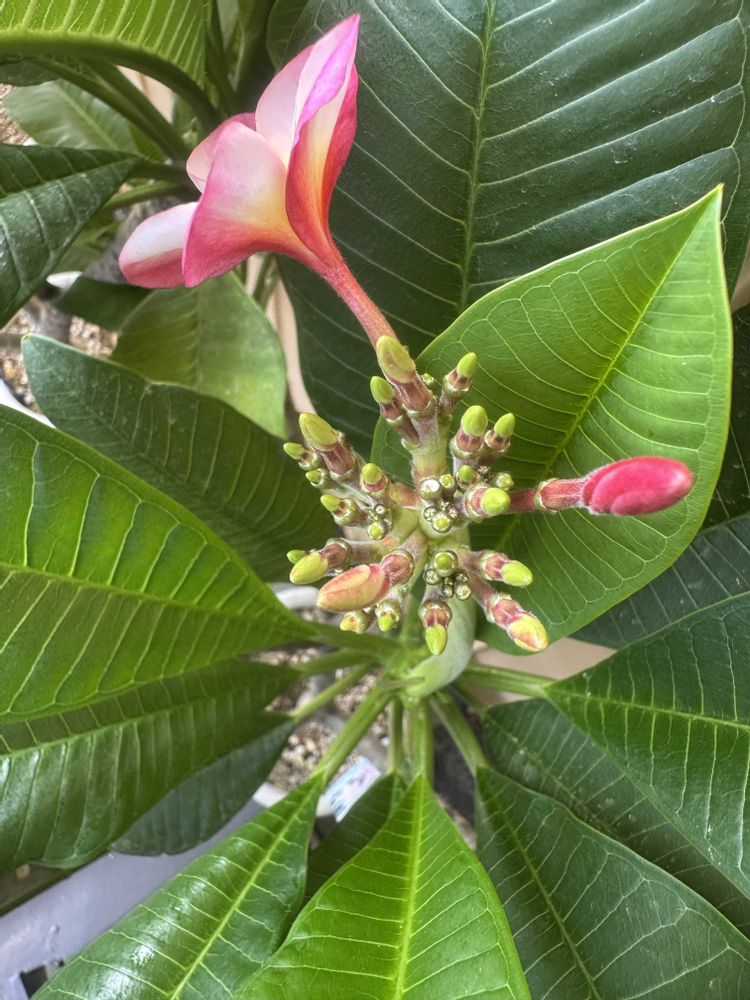 置き場所がなくて、屋根の上に居る我が家のプルメリア❣️