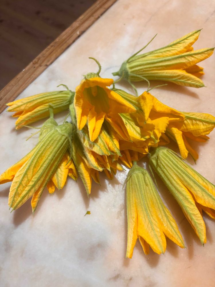 雌花の赤ちゃんカボチャがくっついて居るのはもう少し様子みて大きくならないかと思うから未熟で食べようかと。少し湯通しするか生でも食べる予定。