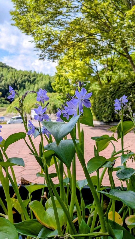 今回はミズアオイが目当てでしたが自生の場所は見つからず😅閉館中のサンクチュアリの建物前の鉢🪴に入った物を