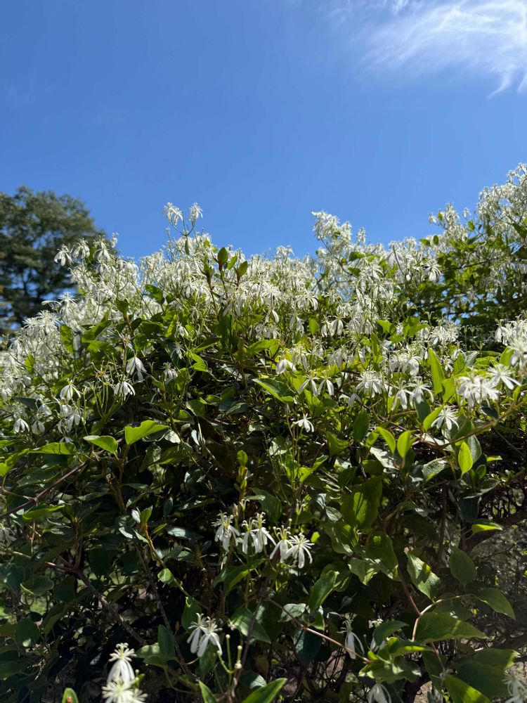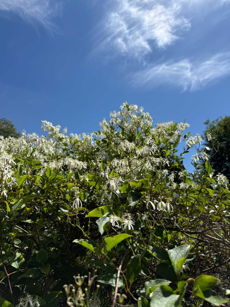 青空に映えるセンニンソウの白い花が素晴らしい光景を創り出してくれた。🤗