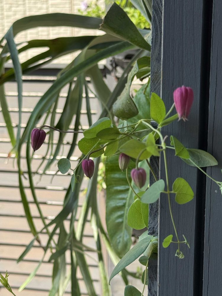 壺型クレマチスさんが夏もずっと咲き続けてくれて嬉しい☺️