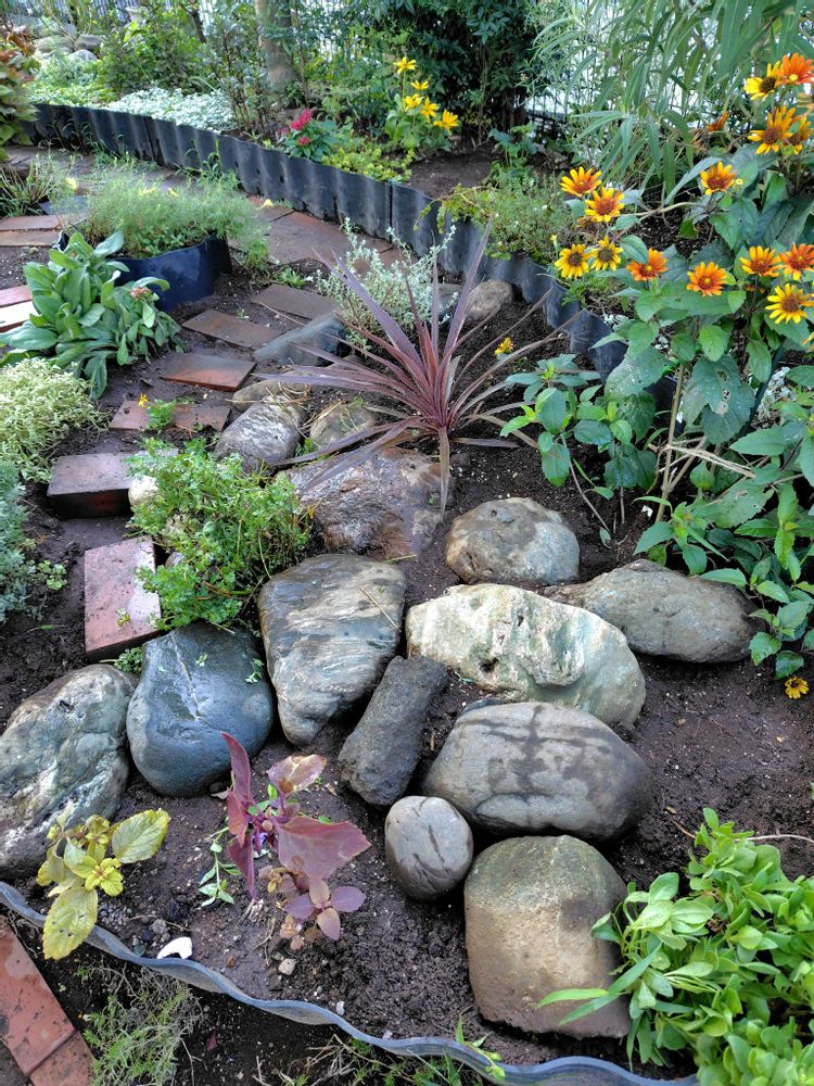 将来捨てづらい資材を買うのは主義に反するのでゴツゴツじゃないけど川石ロックガーデンもどきに変更。