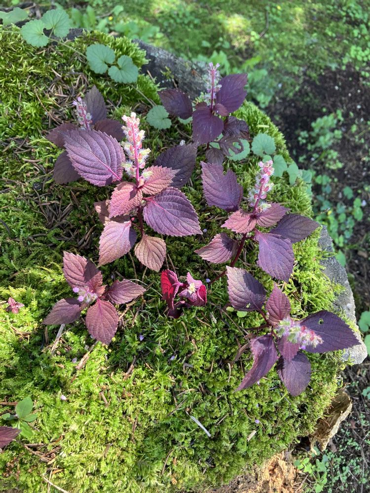 切り株に苔は見かけることありますが、そこに赤紫蘇は珍しいですよね🤩