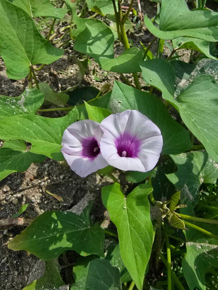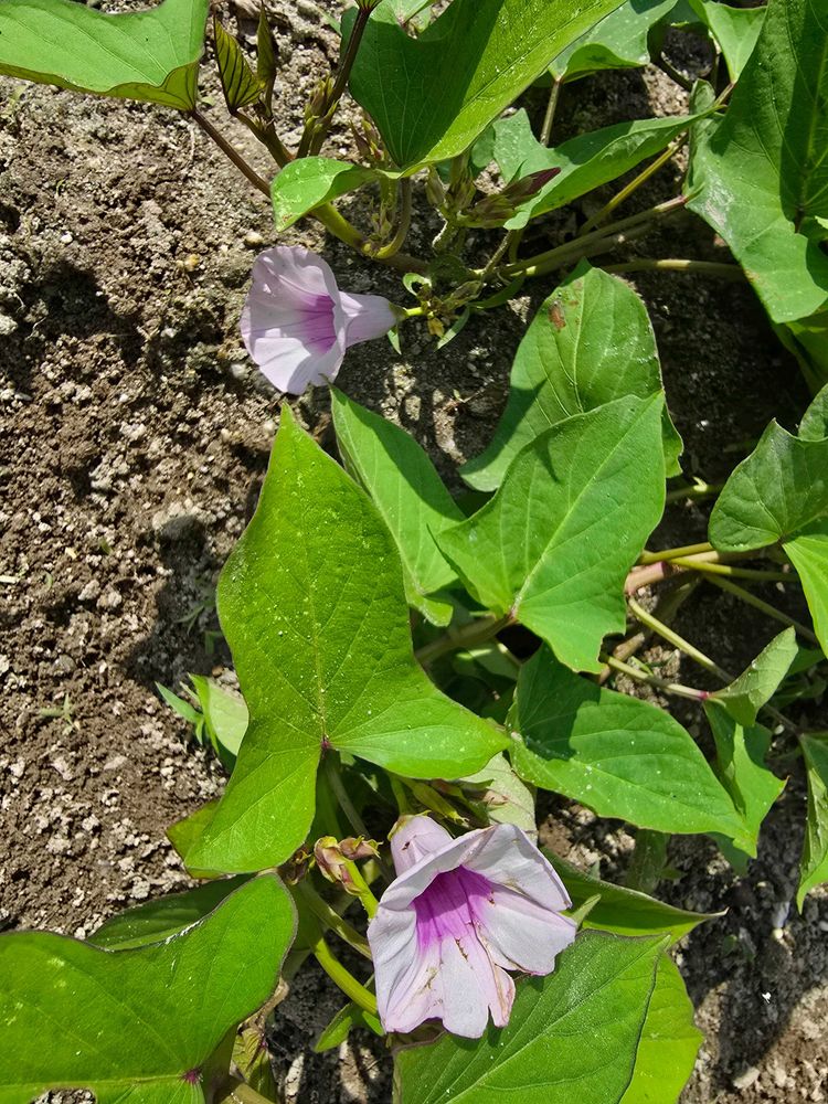 サツマイモの花は珍しく、高温や水分不足など生育環境が悪いと、子孫を残す為、花を咲かせるみたいです
