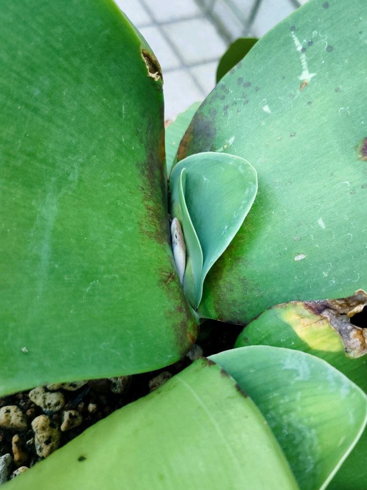 2️⃣葉っぱを✌️で無理矢理に開かなくても、花芽が見えるようになりました。まだまだちっちゃいですが☺️