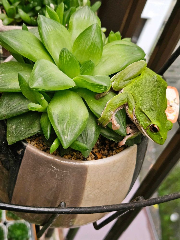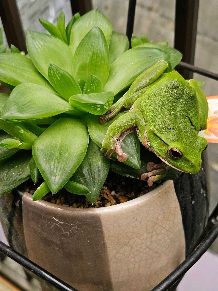 ハオルチア シンビフォルミスとモリアオガエル🐸