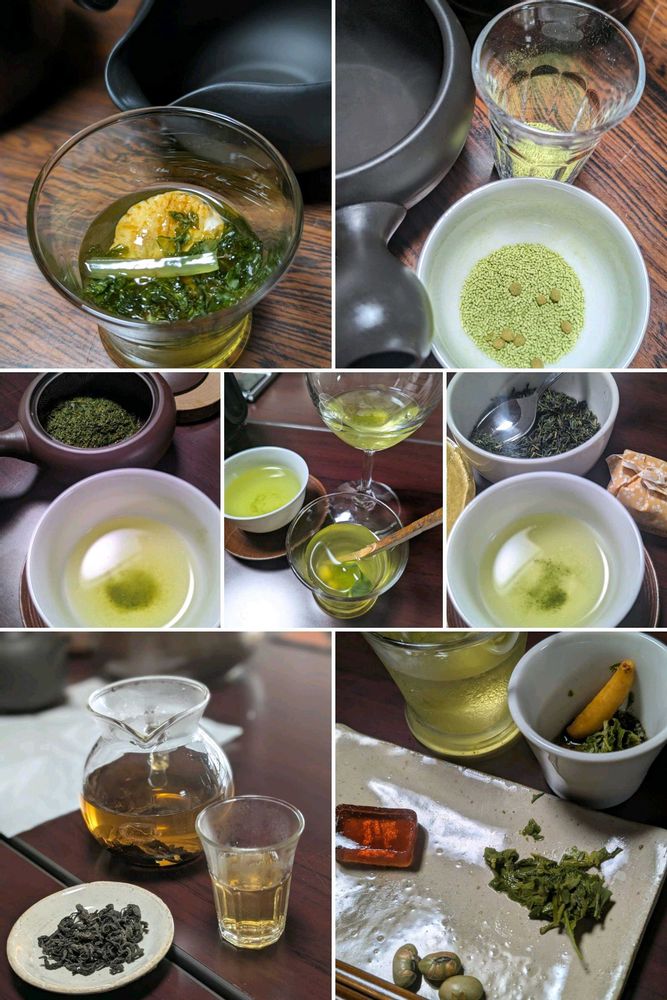 Googleフォトが「似ている写真や動画」と題してコラージュしてくれました🍀😊✨2023年〜2025年🍵喜楽亭で味わうおいしい日本茶の講座を受講しました( ^^) _旦~~夏のお茶、冷茶と活用1、味わう2、飲む3、利用 スキンケア、消臭殺菌 4、食べる 茶殻(醤油、胡麻、柿の種)ψ(˶◕؎◕ ˶)ෆ。㊦㊨