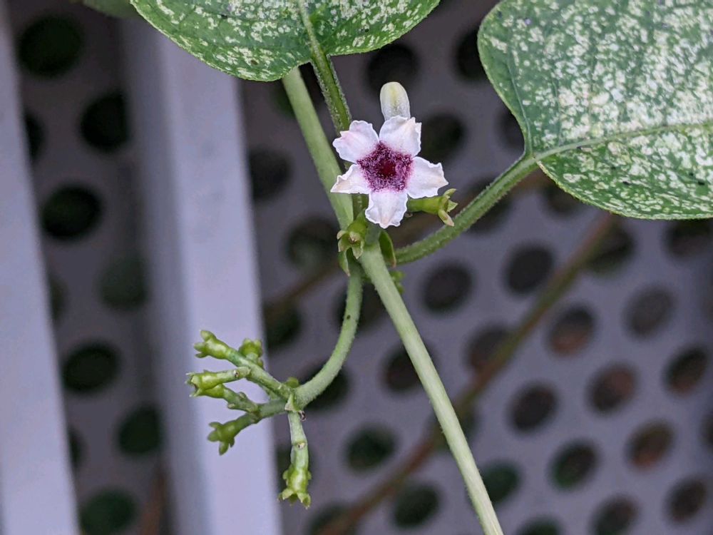 毎年生えてくるヘクソカズラです。今年はちょっと具合が悪そうです。