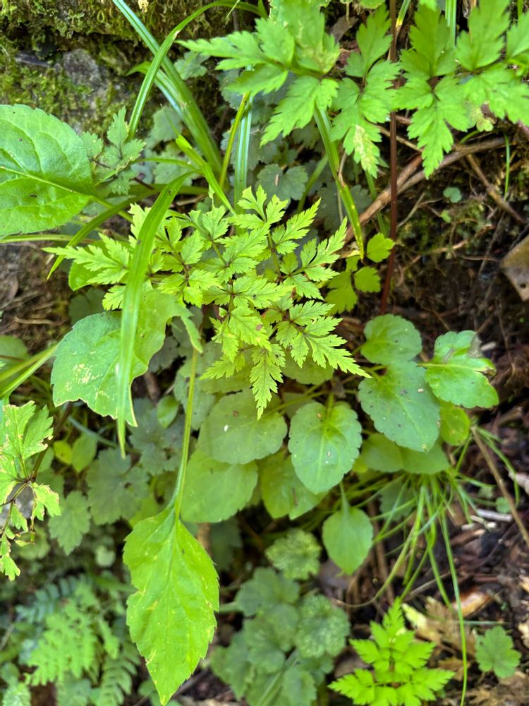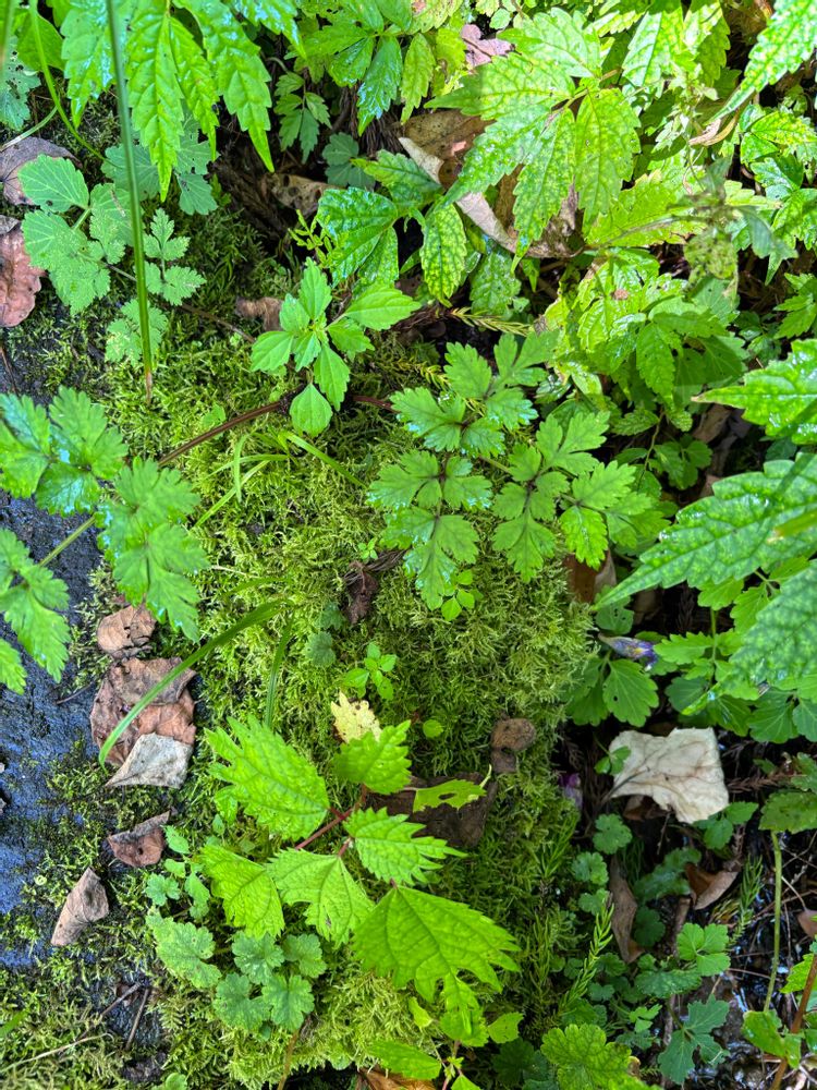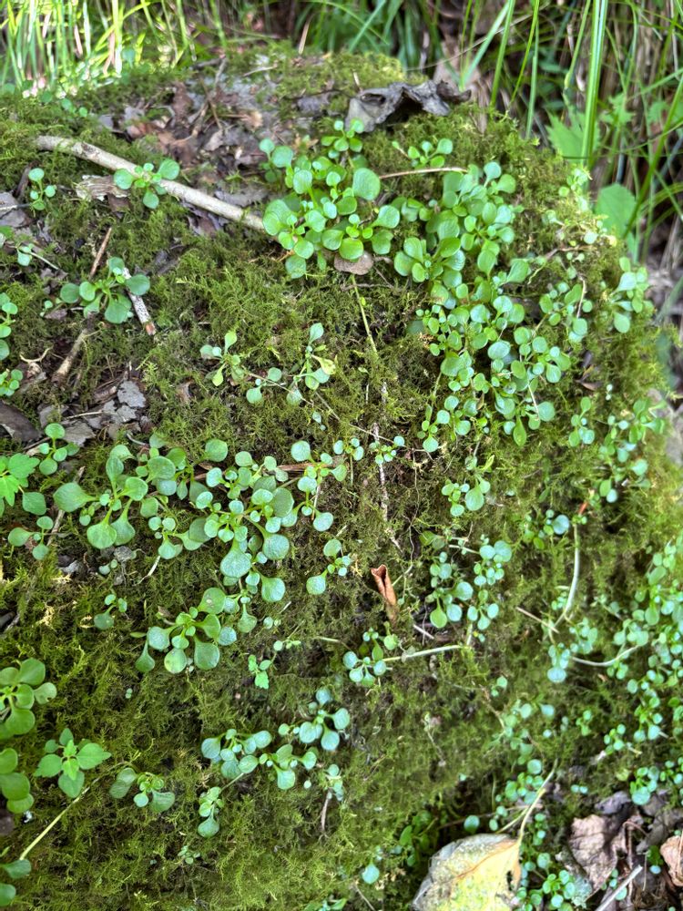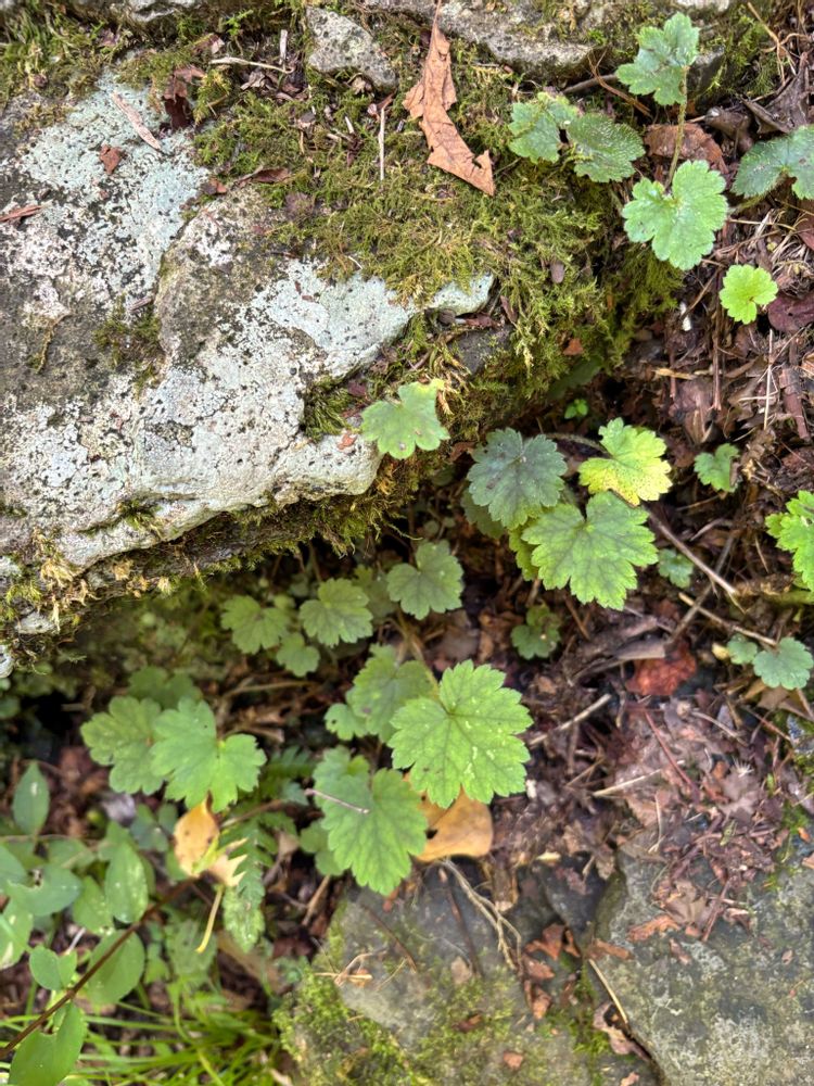 ①〜⑤苔むした岩に色んな葉っぱが生えてました🪨🌿