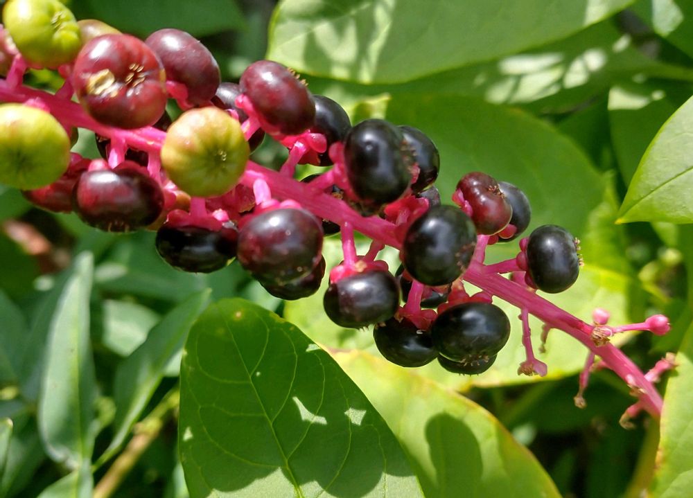ヨウシュヤマゴボウの花と実、濃いワイン色に色付いて💜〜④⑤ 秋、近し〜、ならいいんだけど🥵💦