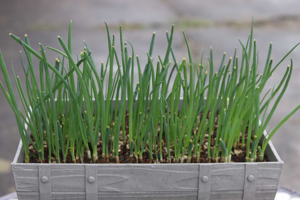 プランター栽培しているスーパーで買った万能ネギとダイソーの種まき葉ねぎの2年目
