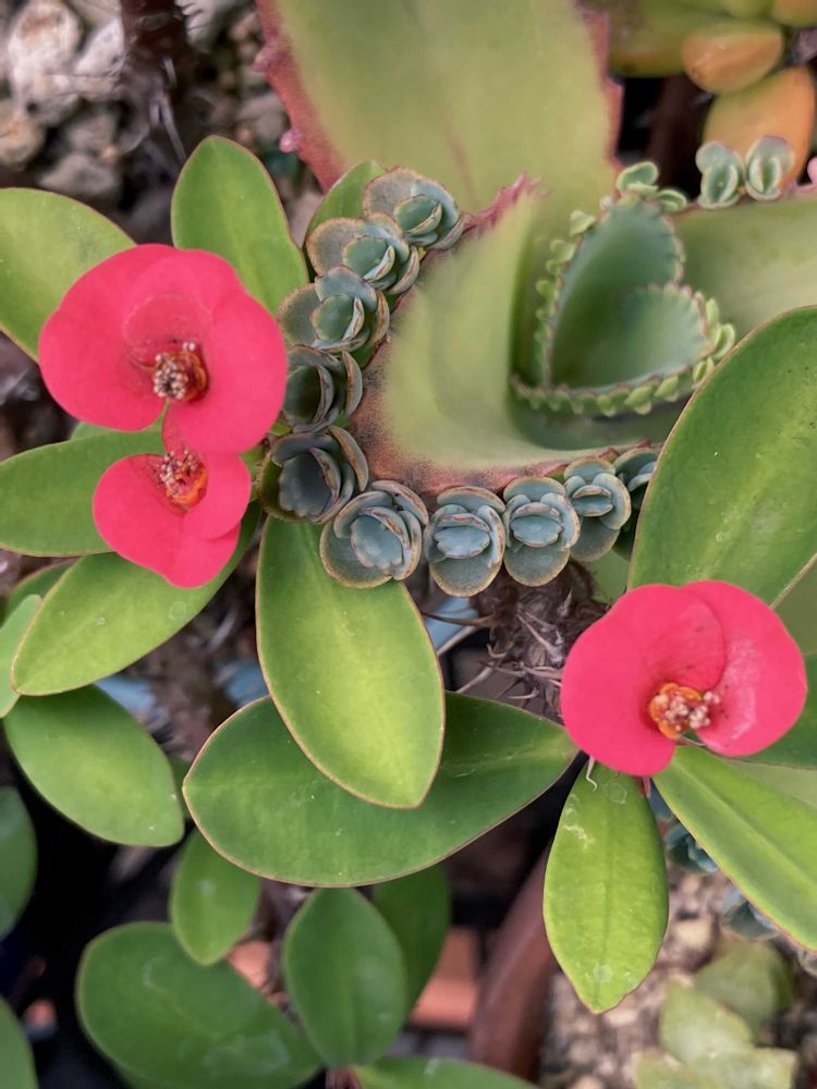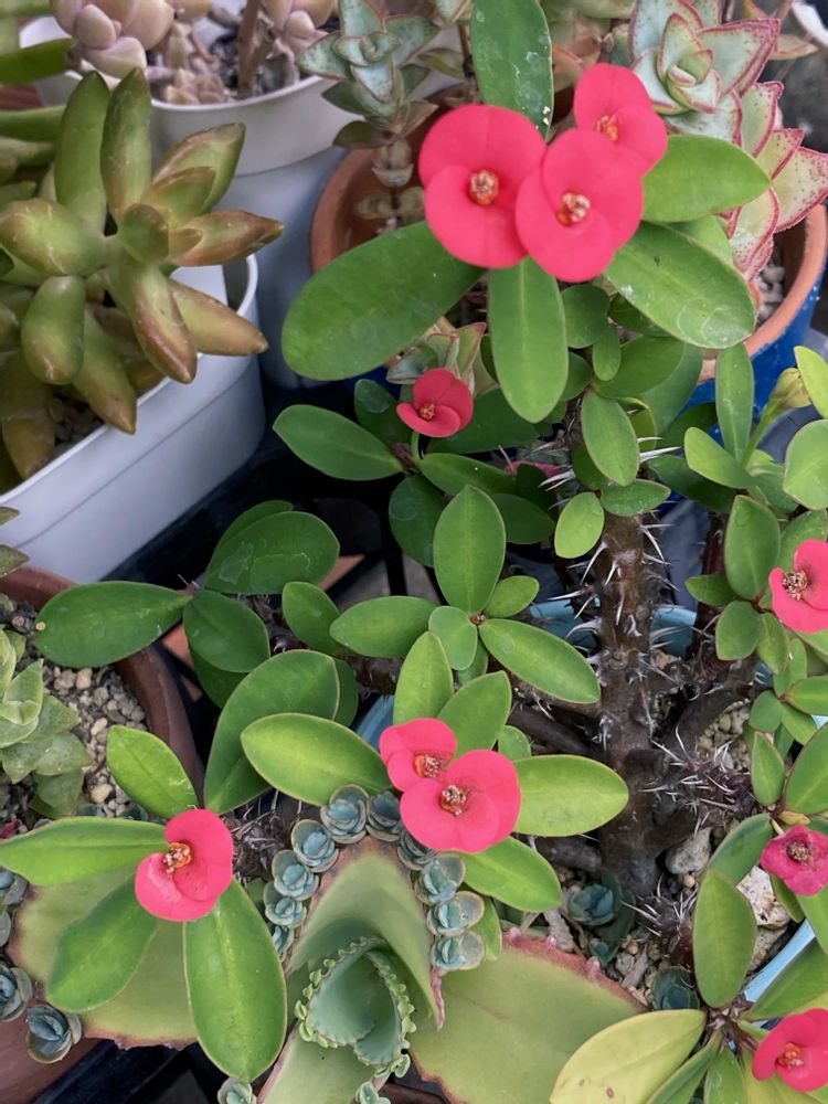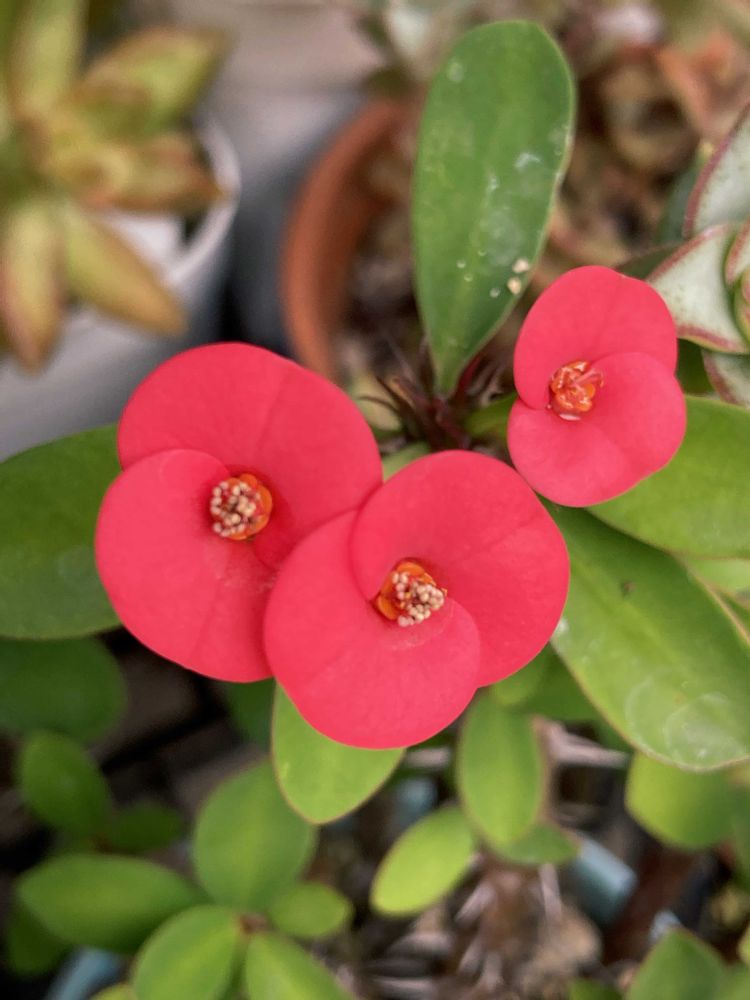 家の花麒麟は花まで咲いてたのに玄関においてて株本からバッサリとイタズラされて切られてしまいました🥺