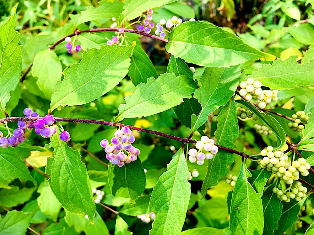 しなやかに伸びた弓状の枝に密集して実をつける「小紫(コムラサキ)」でおはようございます✨🌿💜☺️💜🌿✨