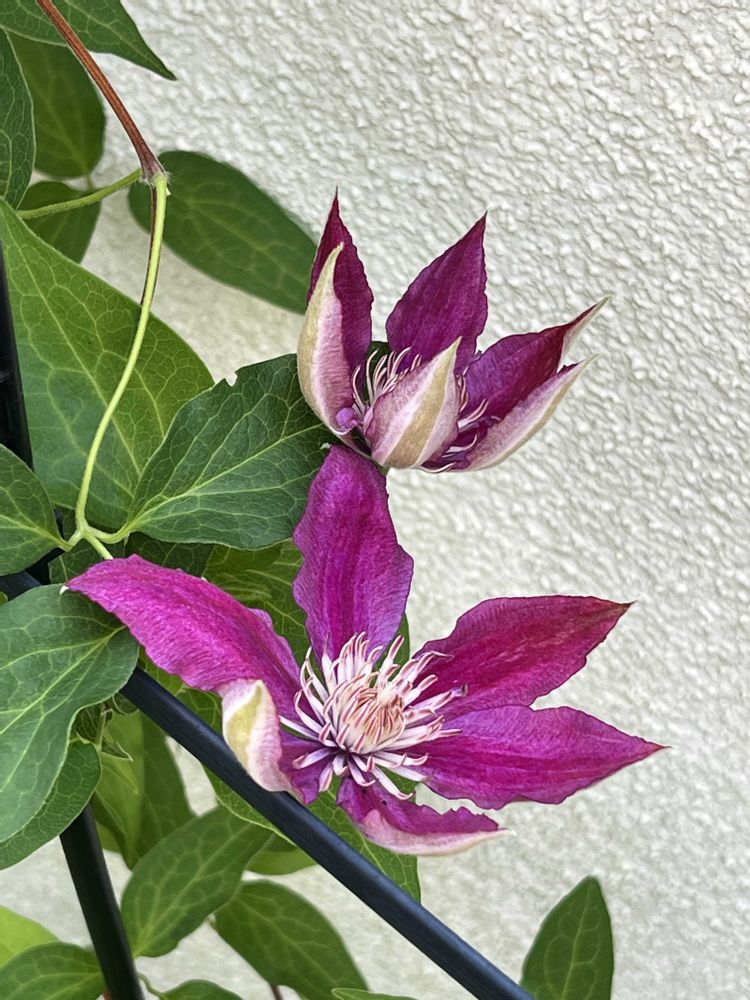 お庭のクレマチス「ドクターラッペル」今年3回目が咲いてます。