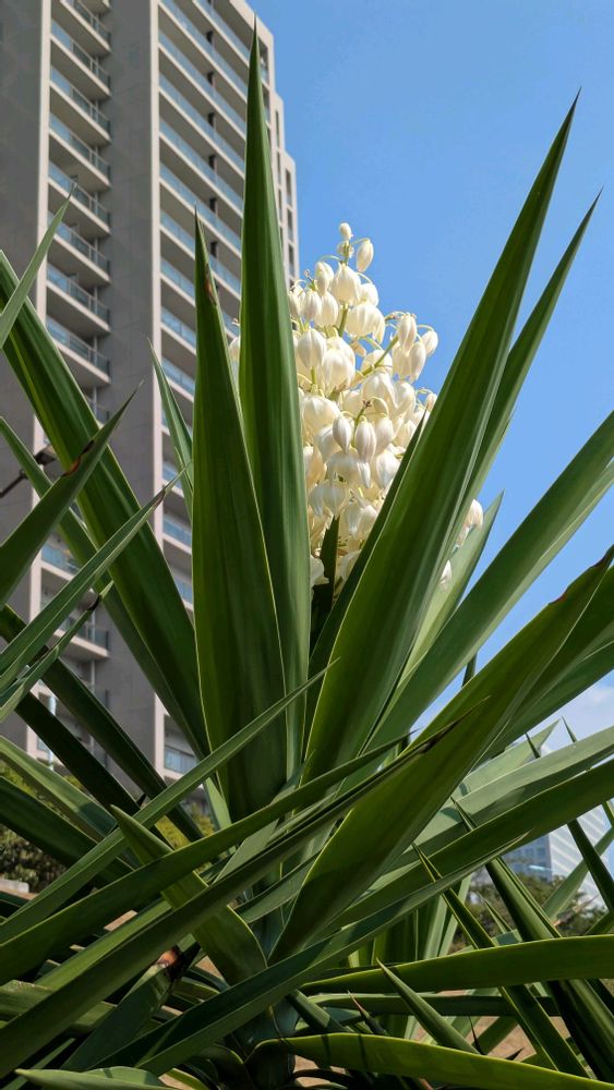 散歩道🚶、ユッカの花が咲いています🌸🌸