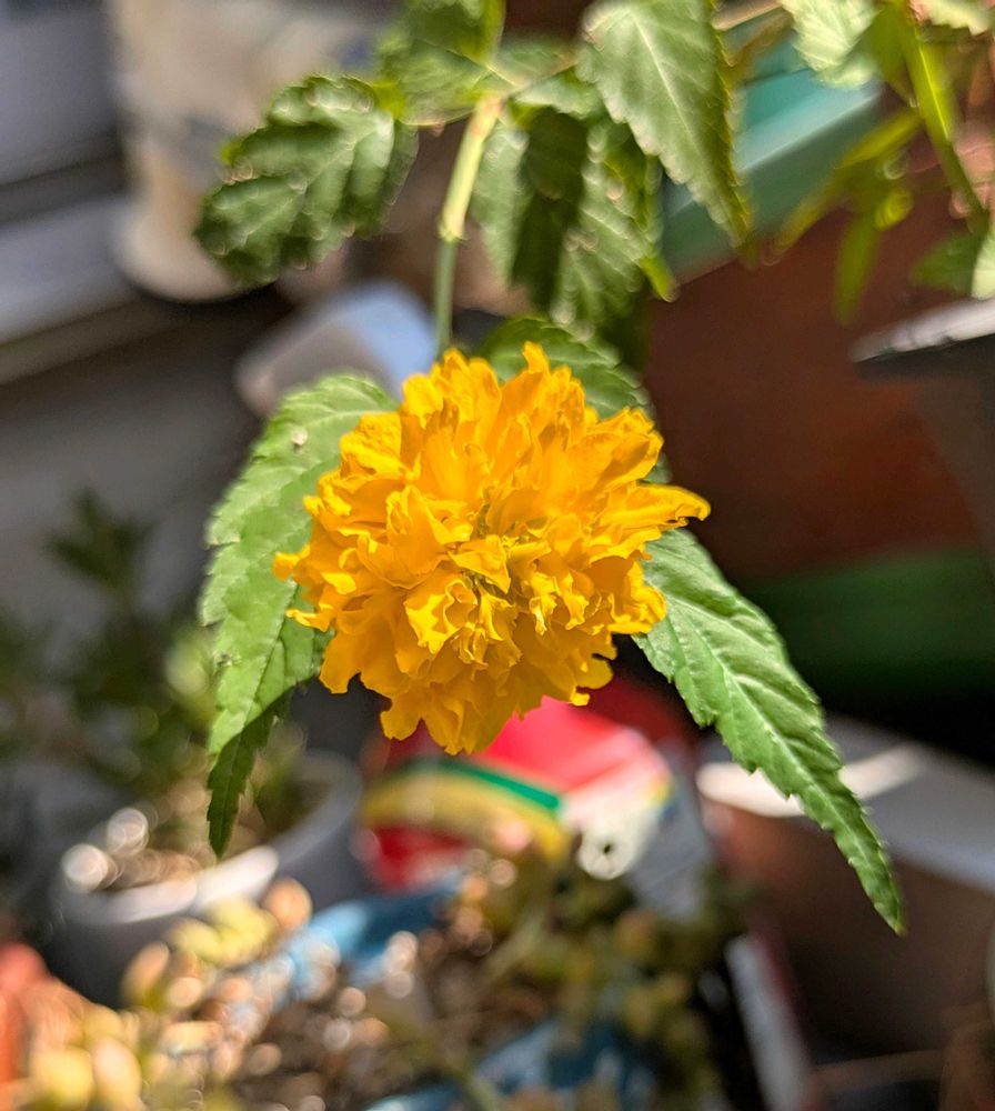 挿し木をしていた山吹に花がひとつ咲いていました☺️💓