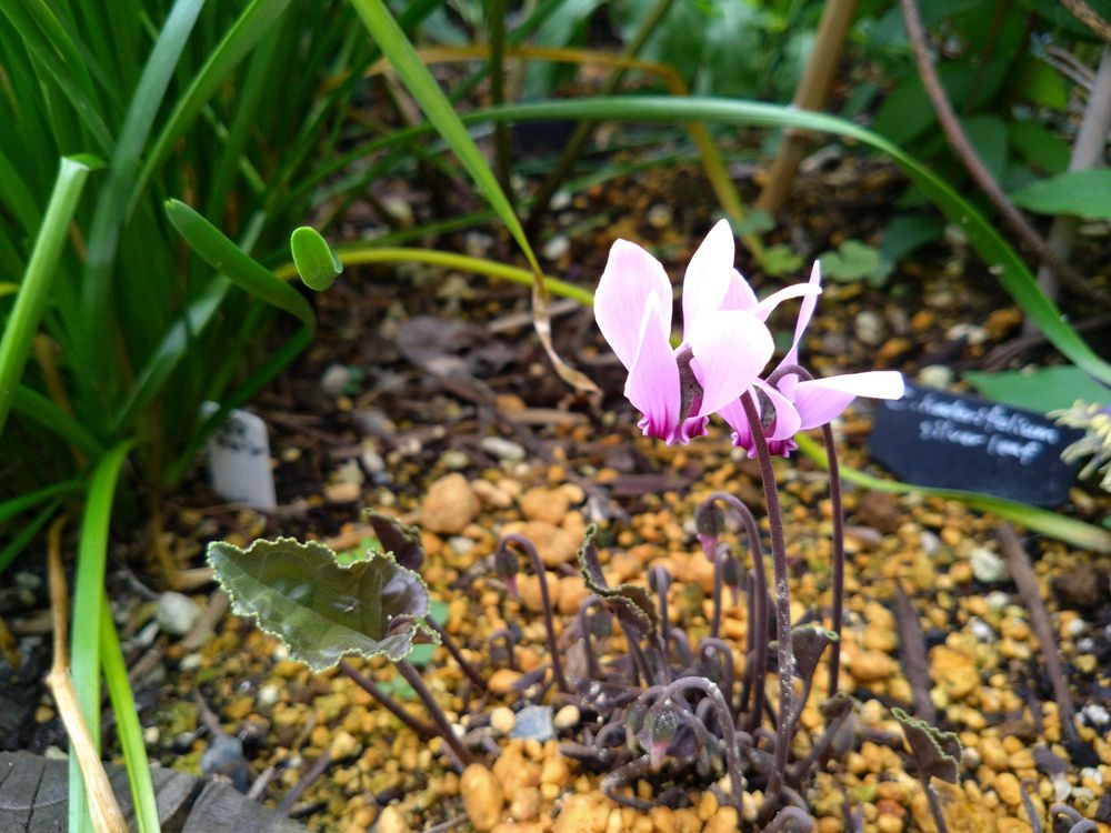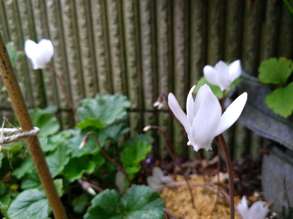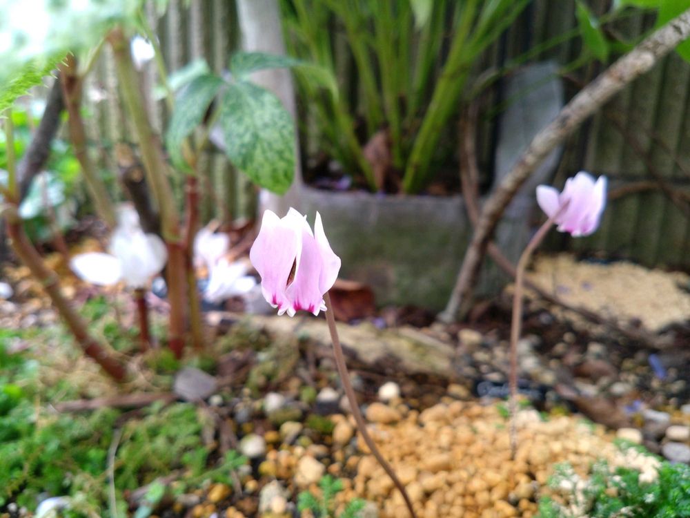 花壇のあちこちから、原種シクラメン ヘデリフォリウムが咲いてきています💗🩷🤍