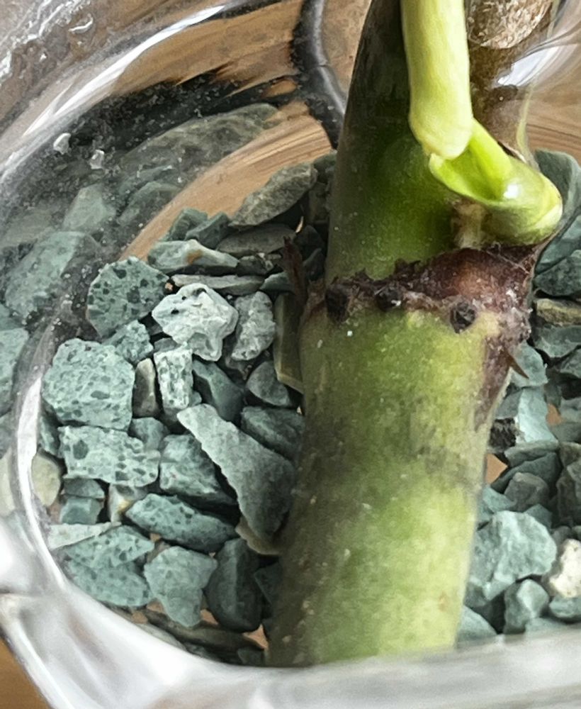 鉢を変えようと抜いたら、溶け落た茎なのかポロンと笑