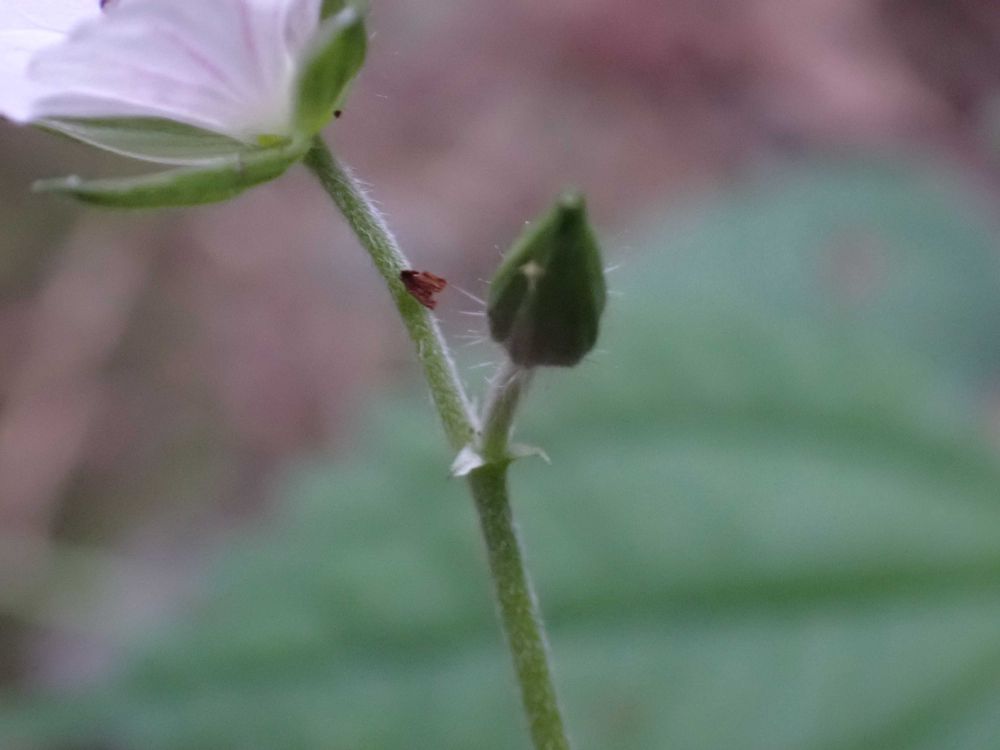 肉眼では、毛が張りついている感じに見えましたが、よく見ると、柄の毛は、まっすぐ伸びています。萼にも、毛が伸びて生えていました。